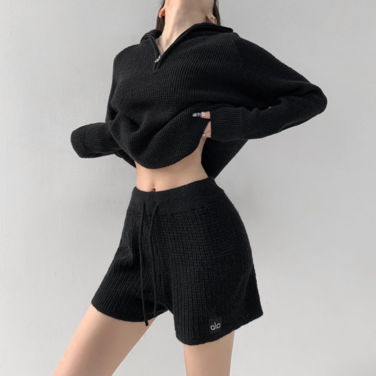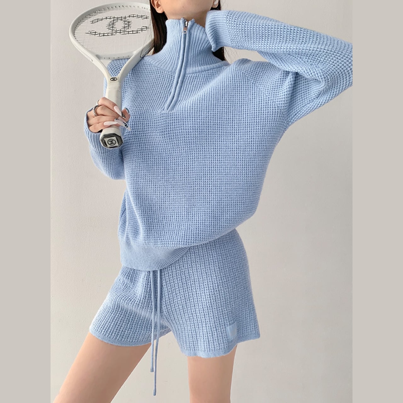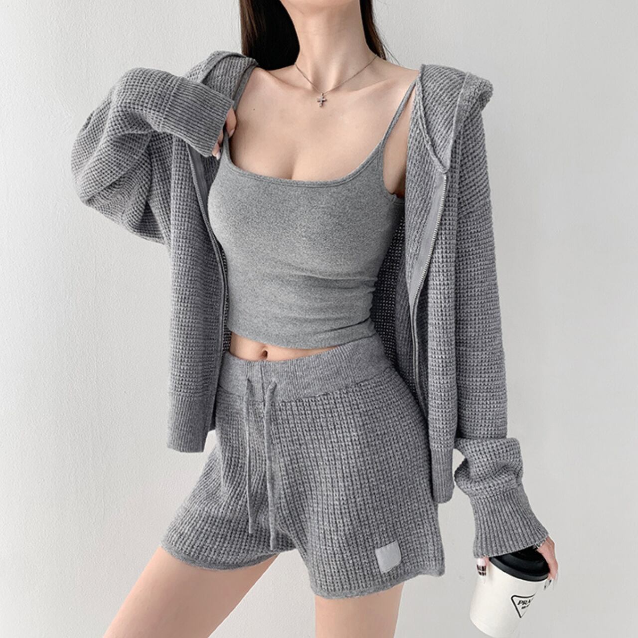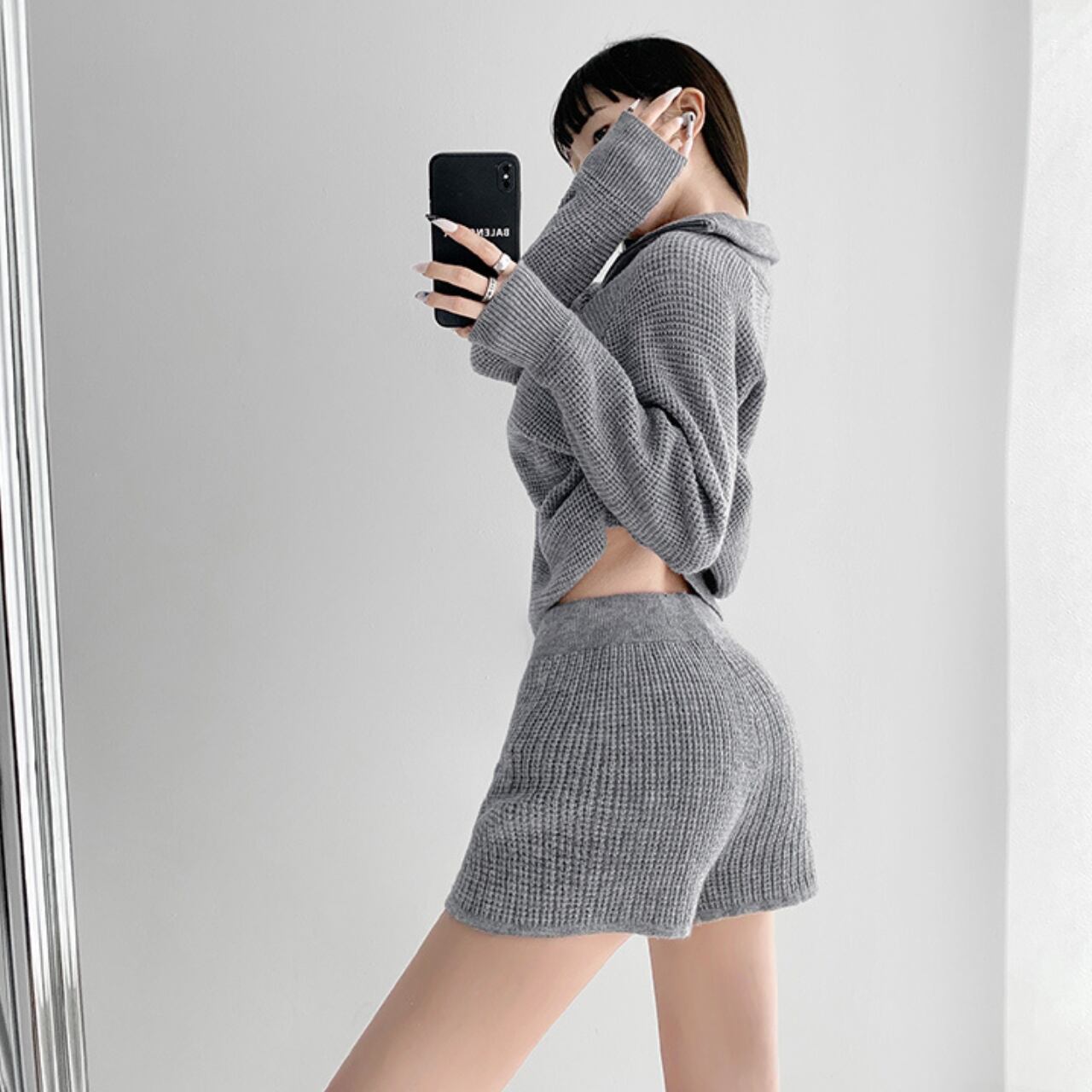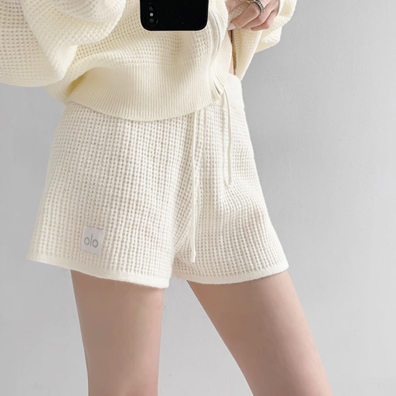 A00007 ドローストリング ワッフルニット ショートパンツ
