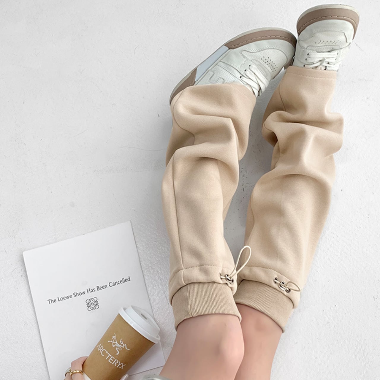 ルーズなシルエットが魅力のレッグウォーマー。ドローストリングでシルエットを調整できるので、様々なスタイルに合わせやすいアイテムです。普段使いはもちろん、ダンスやヨガなどのアクティブなシーンにもおすすめです。足元にボリュームをプラスして、トレンド感のあるスタイリングを楽しめます。