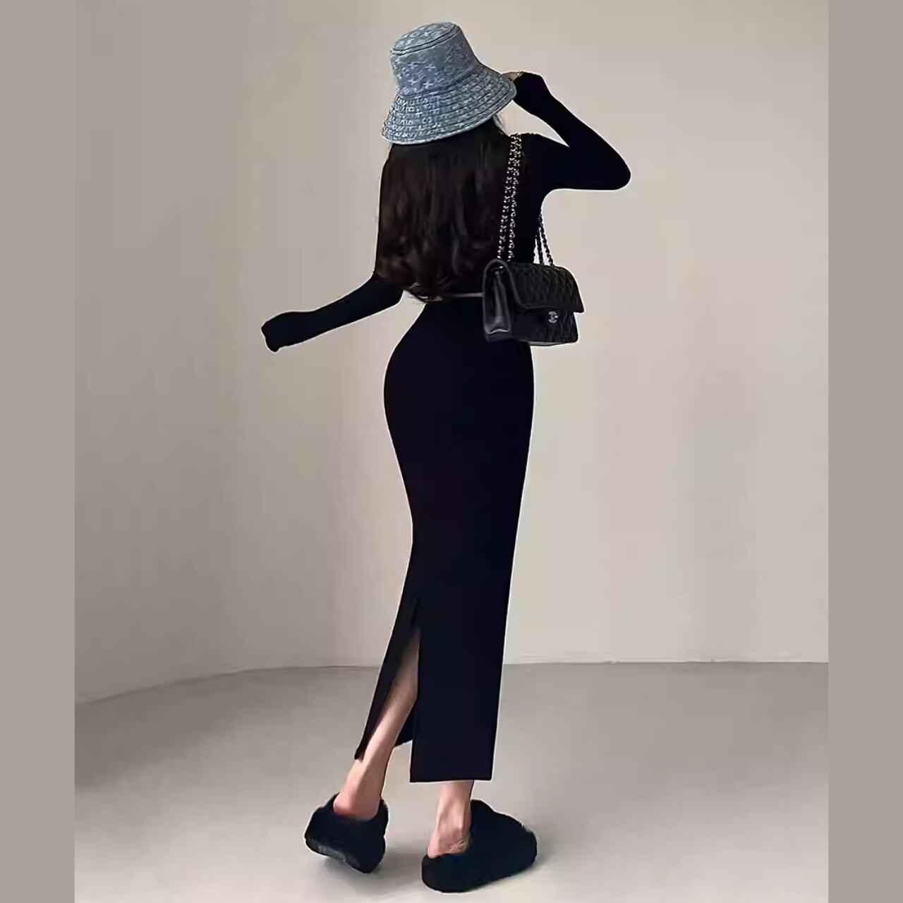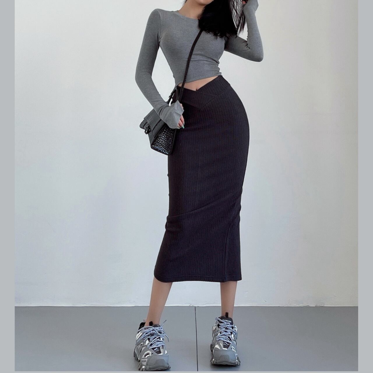 カーヴィラインを強調する、リブスリットスカート。ウエスト部分のデザインがポイントで、トップスをインした際にスタイル良く見せてくれます。程よい丈感で、動きやすく、デイリーユースに最適。シンプルなデザインなので、柄物トップスやアクセサリーとの相性も抜群です。