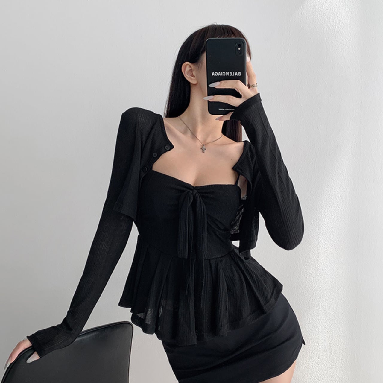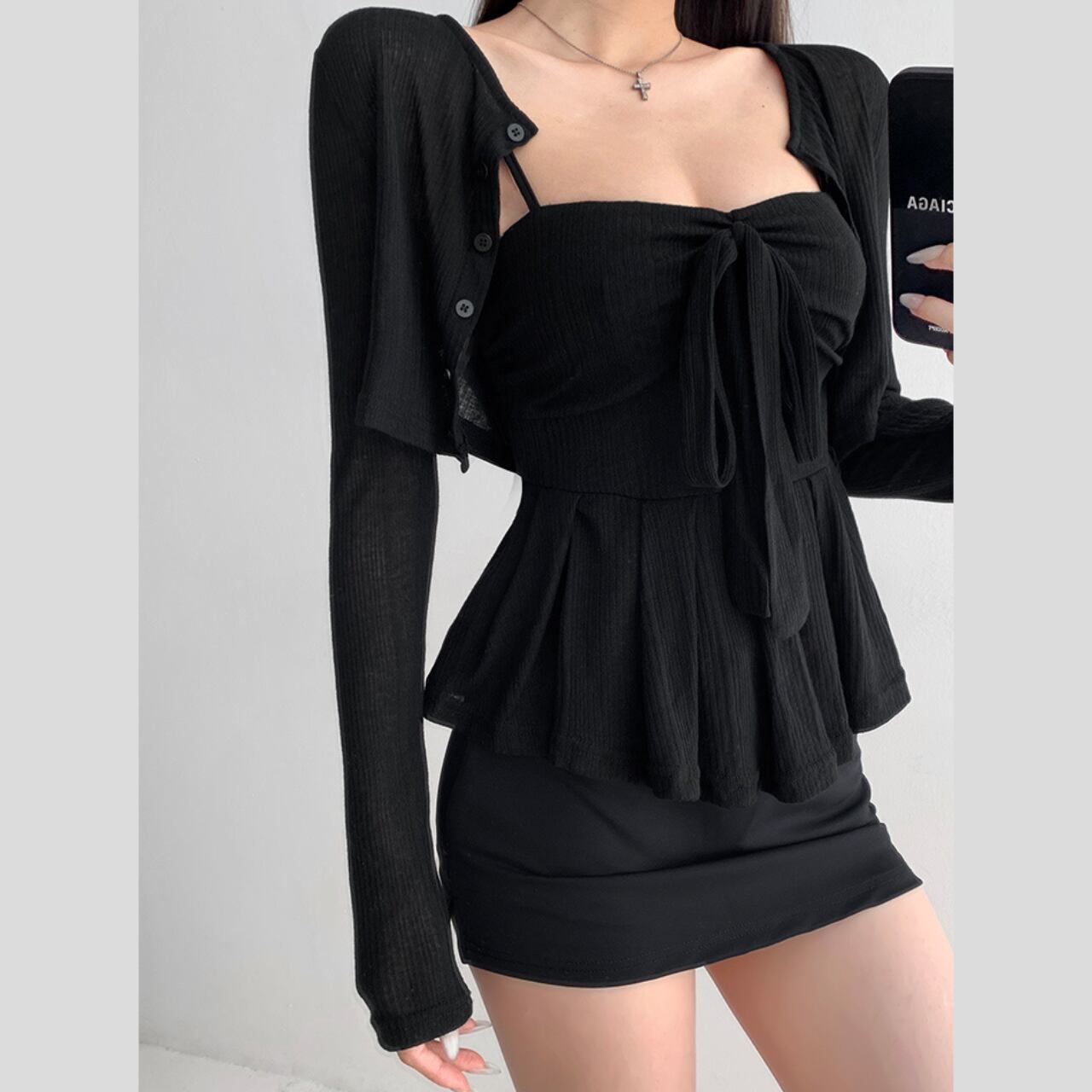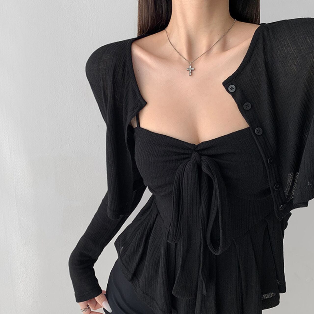 A00033 リボンペプラム リブセットトップス
