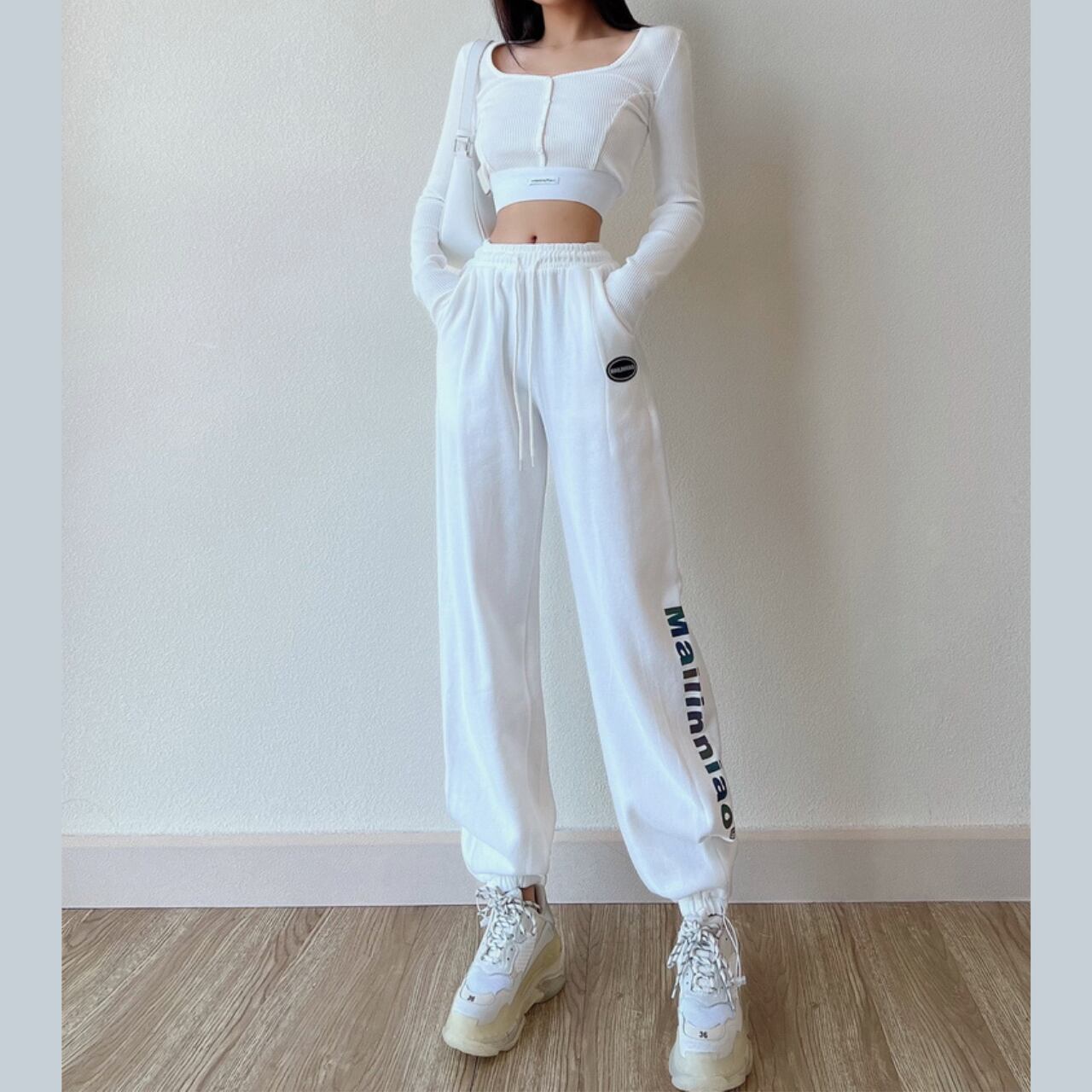ほどよいフィット感でウエストラインをすっきり見せつつ、伸びの良いリブ素材で着心地はストレスフリー。