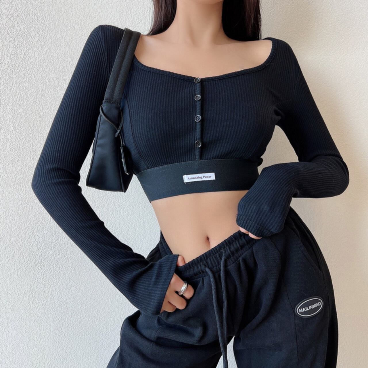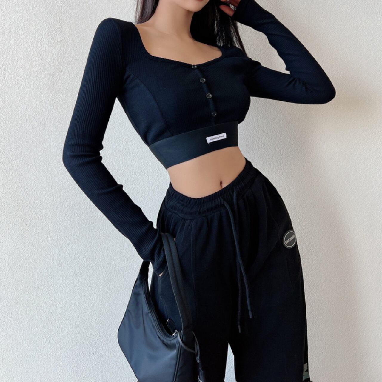 A00071 クロップリブ・スナップカーデトップス