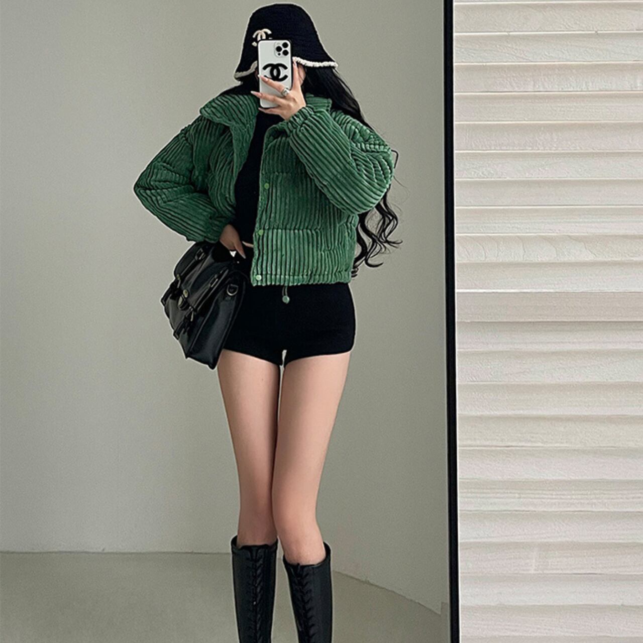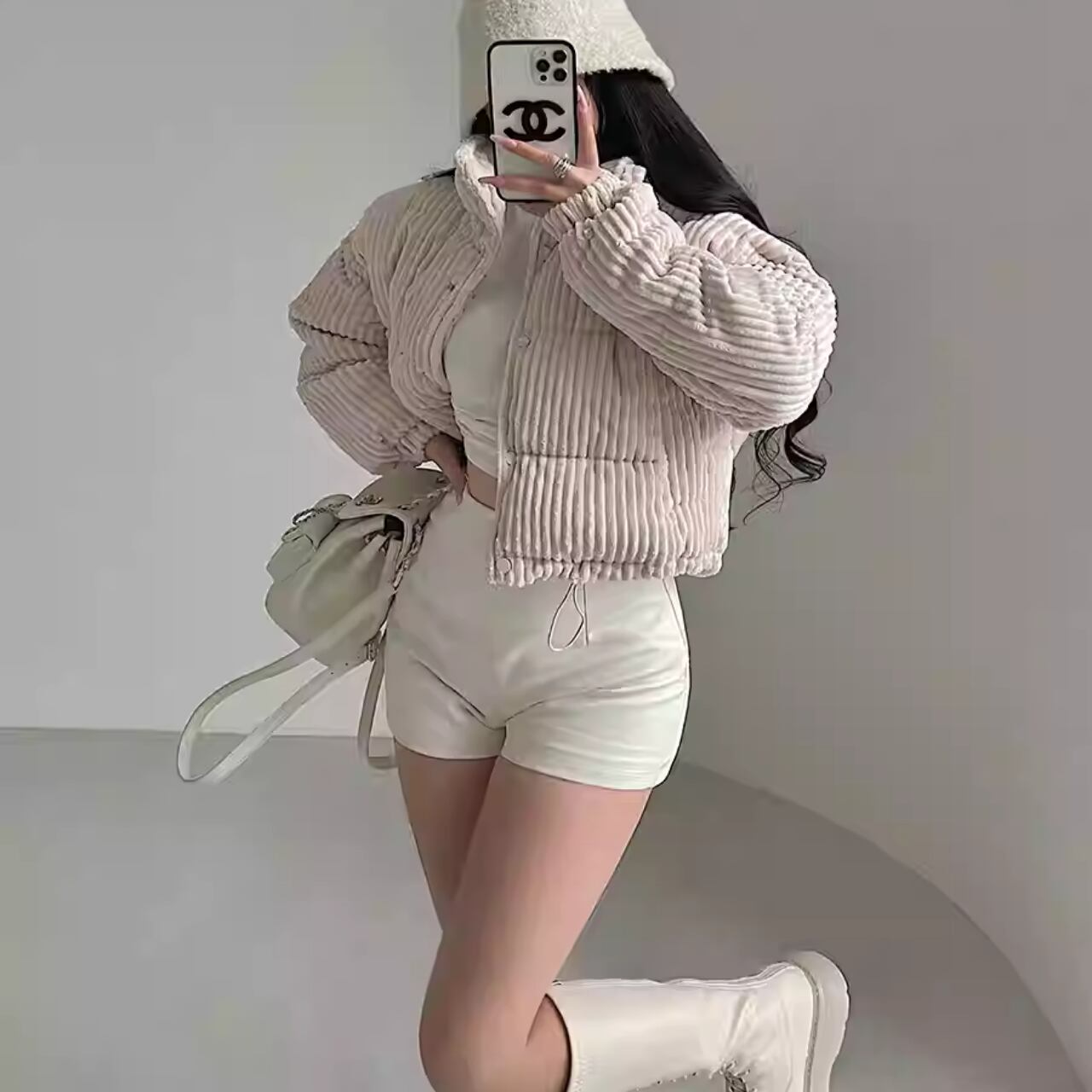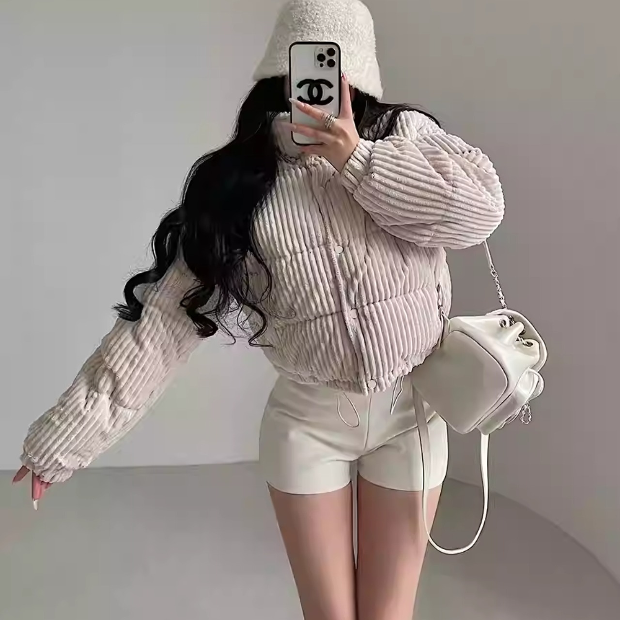 カジュアルながらも上品な印象を与えるショートダウンジャケット。