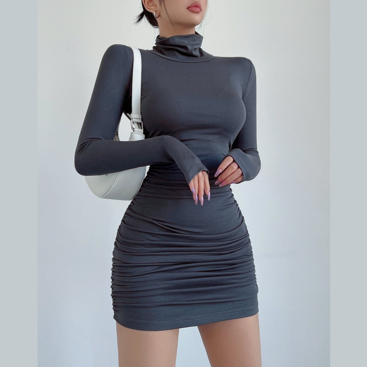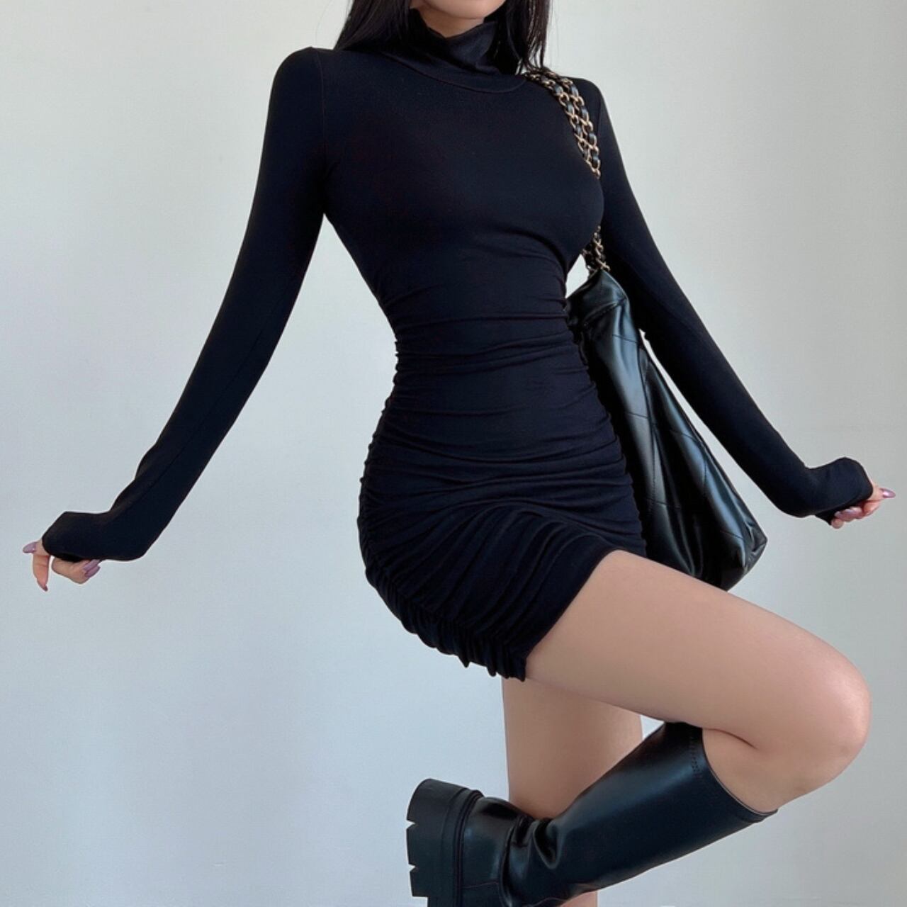 A00041 タイトスリム・ハイネックシャーリングワンピース