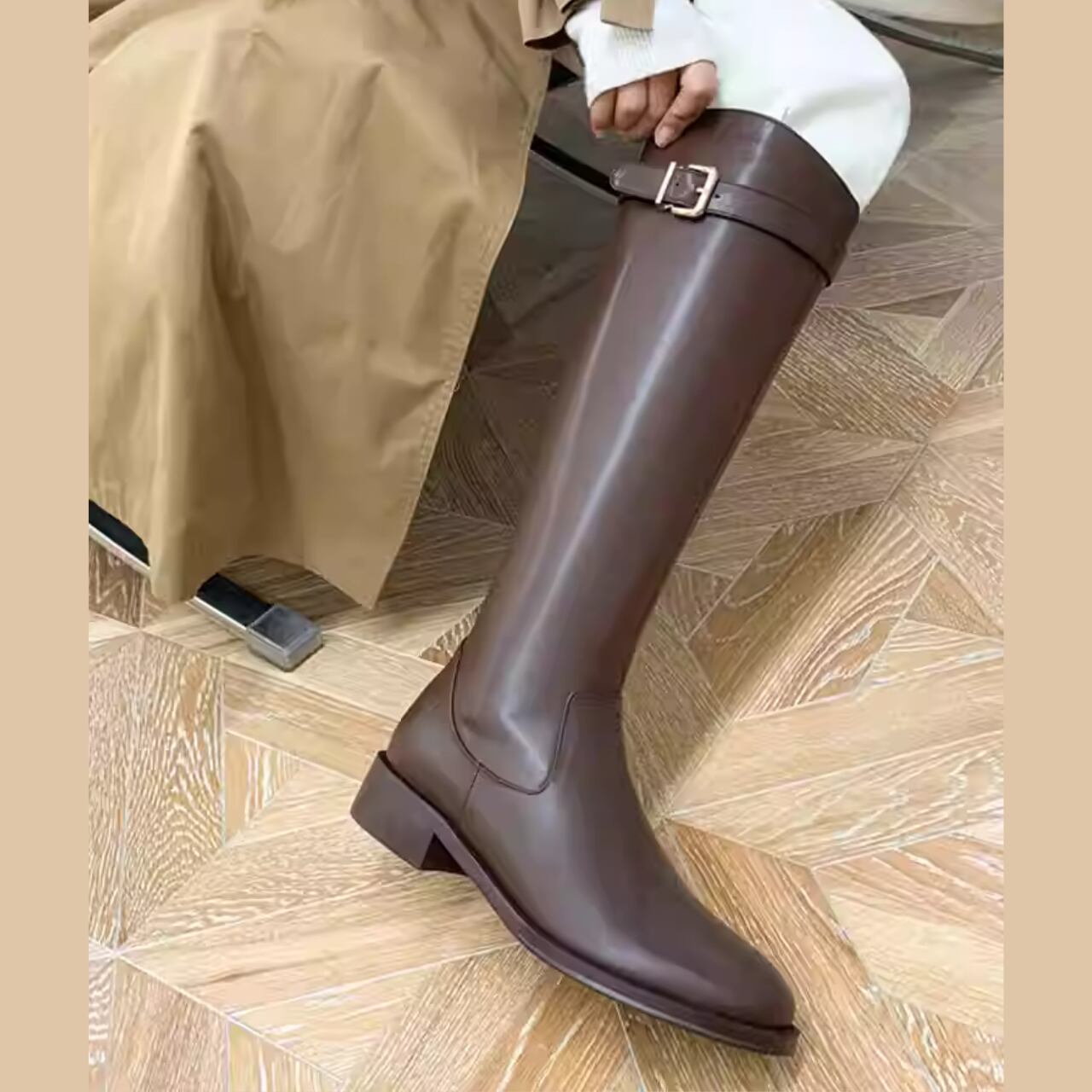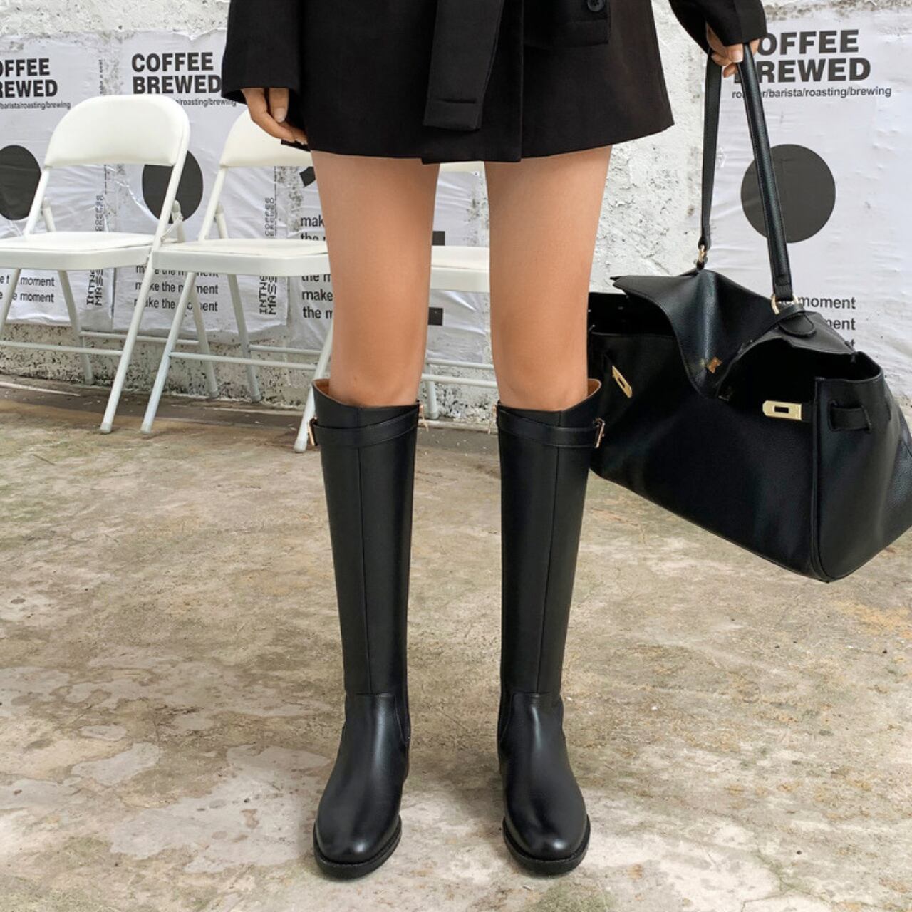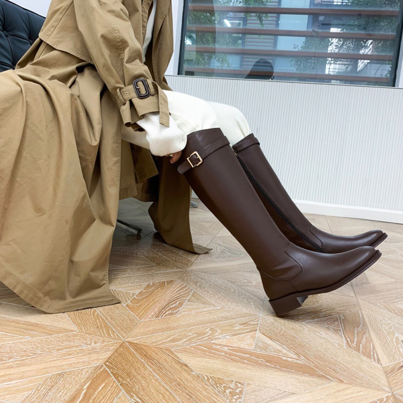 大人のためのストラップ付きロングブーツ。