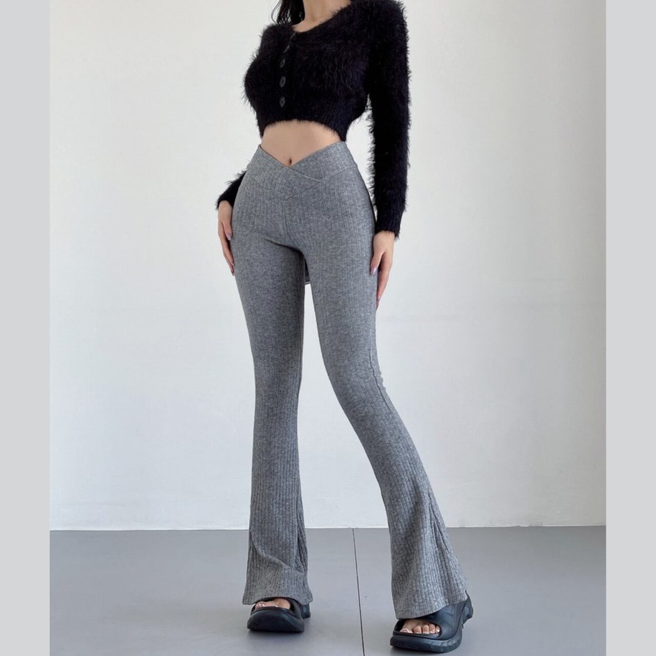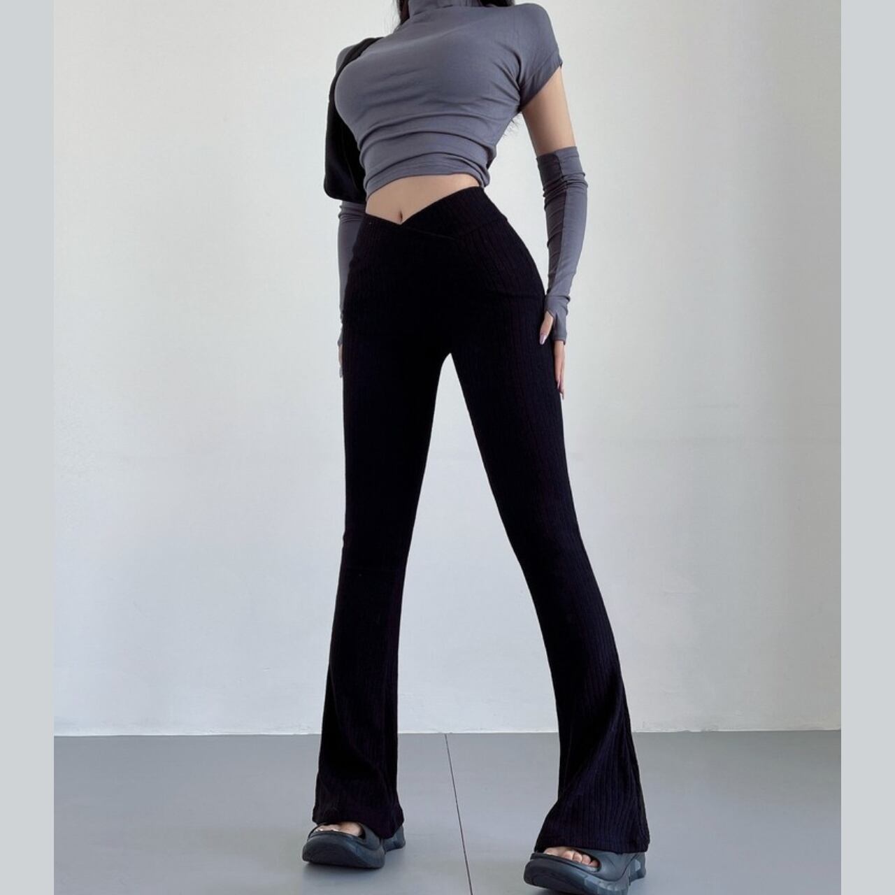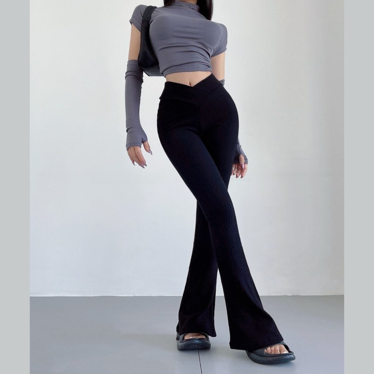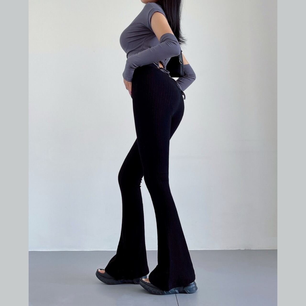 A00073 Vウエスト・リブフレアレギンスパンツ