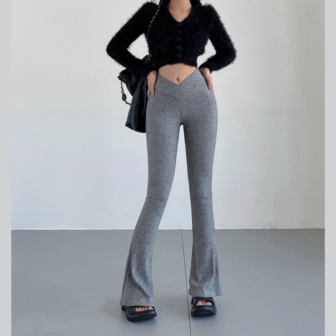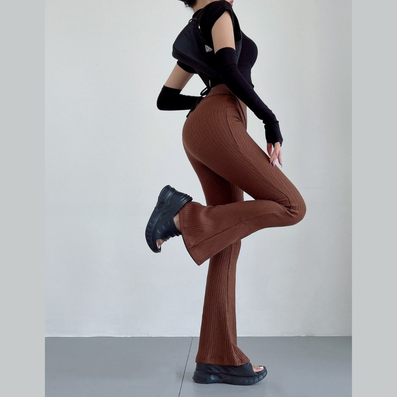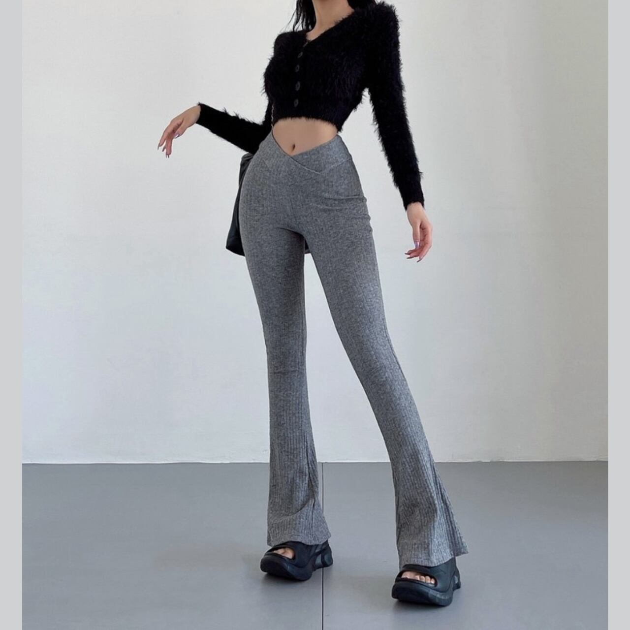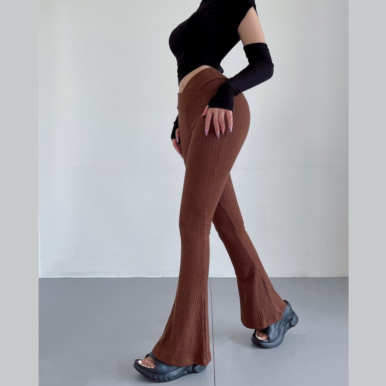 A00073 Vウエスト・リブフレアレギンスパンツ
