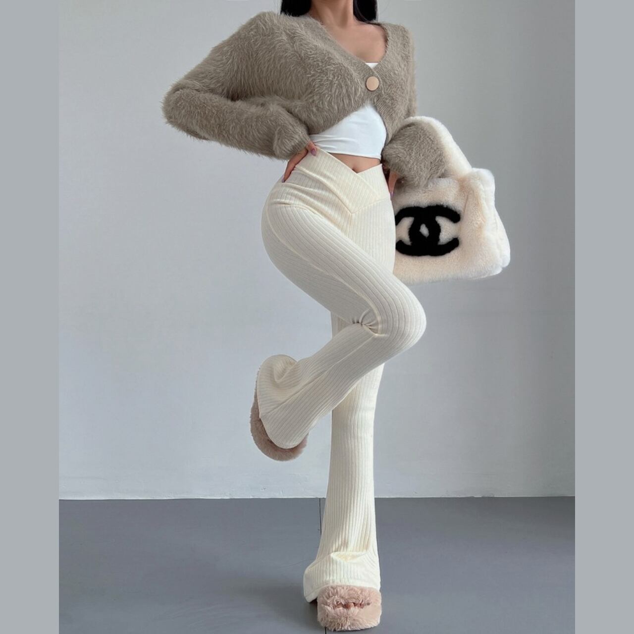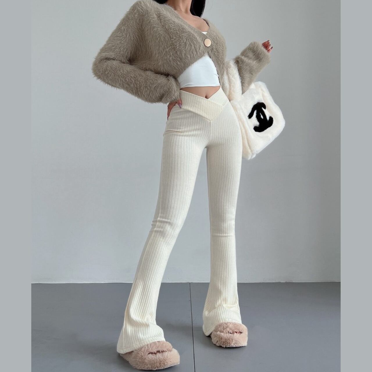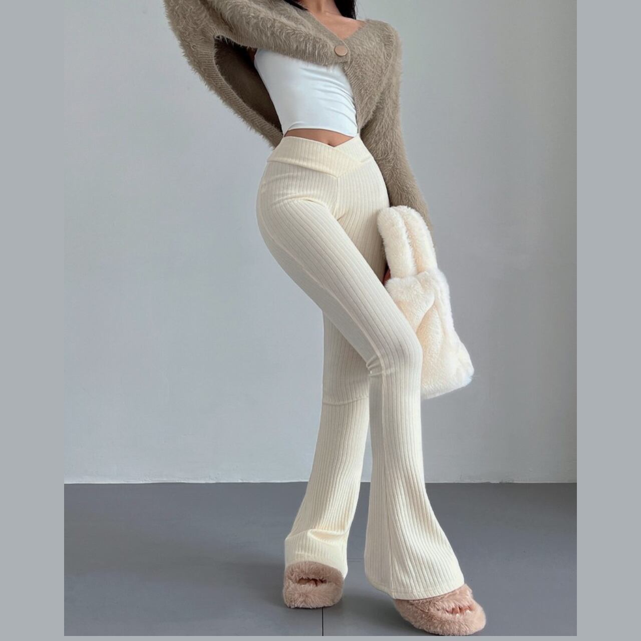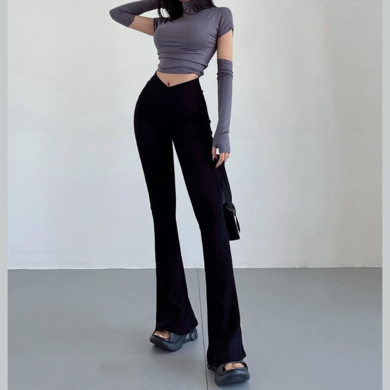 A00073 Vウエスト・リブフレアレギンスパンツ