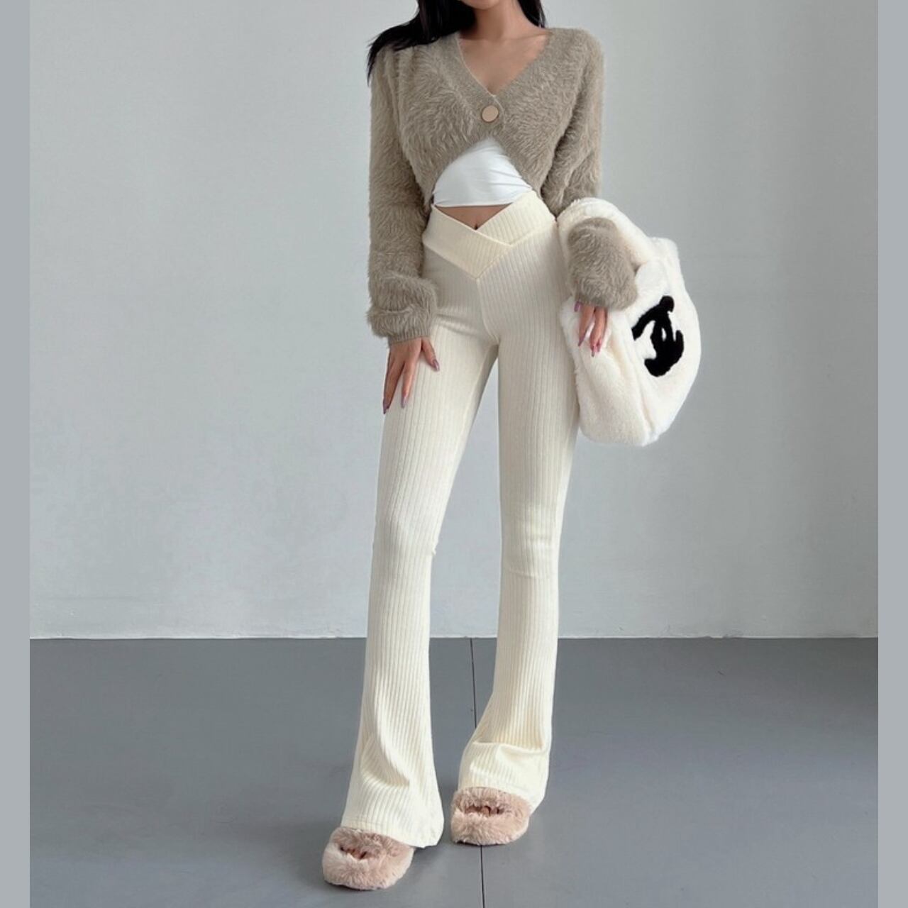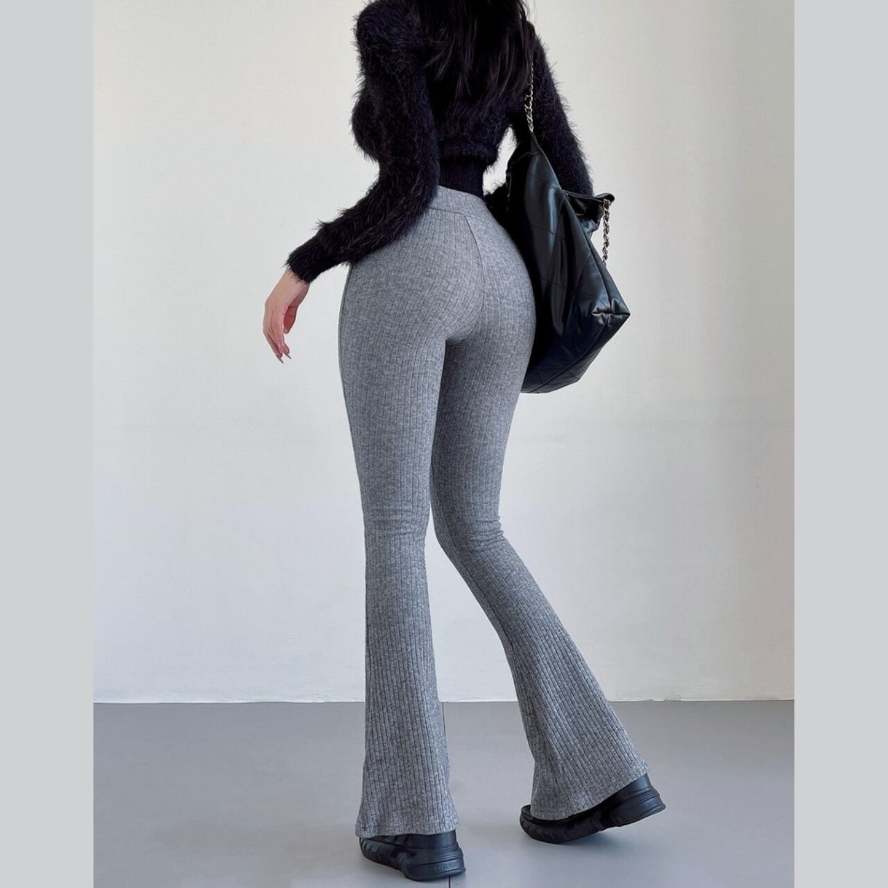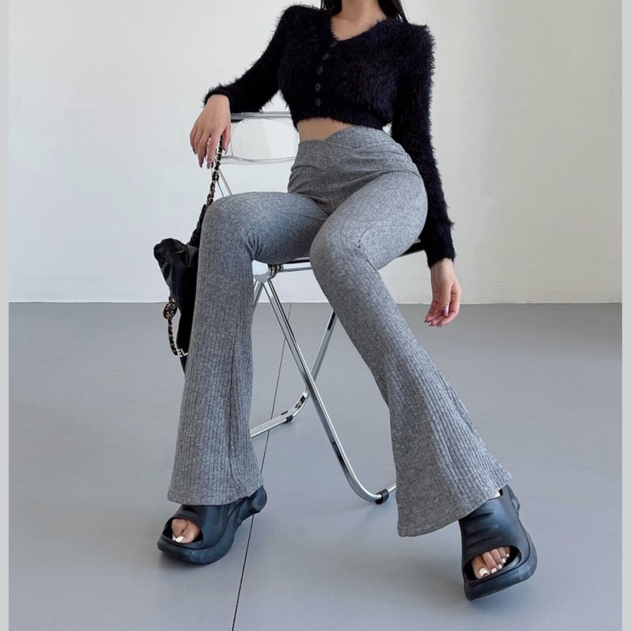 V字ウエストでスタイルアップ効果が期待できるリブフレアレギンスパンツ。カジュアルながらも洗練された印象を与えます。普段使いはもちろん、ちょっとしたお出かけにも最適。シンプルなトップスと合わせるだけで、こなれ感のあるスタイリングが完成します。